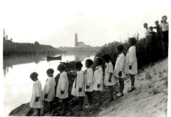 Alunne di una scuola elementare in riva al fiume