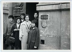 Davanti all'ingresso, silenziose e curiose.