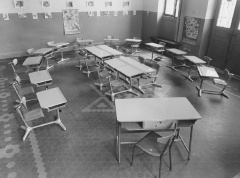 Arredi scolastici e ambiente classe nelle scuole italiane degli anni Cinquanta.